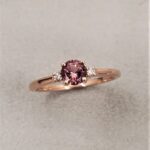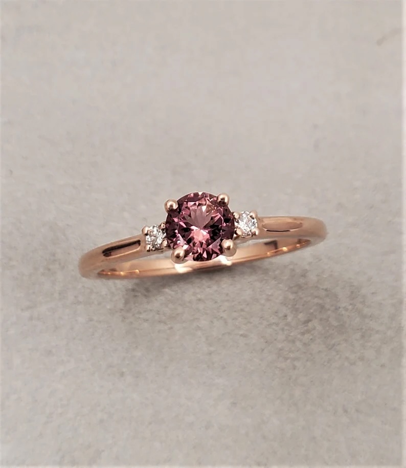 Radiant and rare. This 14k rose gold ring, featuring a breathtaking round lotus garnet and sparkling diamonds, is the perfect choice for January birthdays or anyone who loves unique, ethically mined gems from Tanzania.