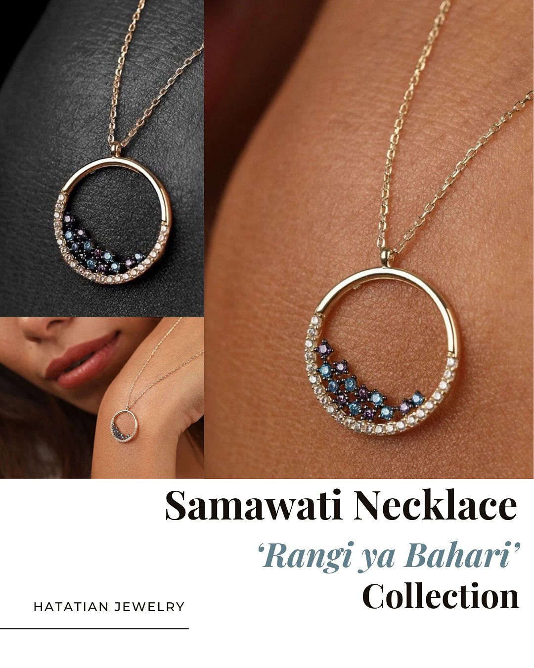Named after the Swahili word for blue, Samawati draws inspiration from the sky and sea. Set in 18K gold, its half-eternity arc of natural diamonds (G-H color, VS clarity, 20 Pieces ~0.10ct) embraces a celestial mix of aquamarine (March) and amethyst (February)—resembling scattered stars or shimmering ocean sand.