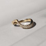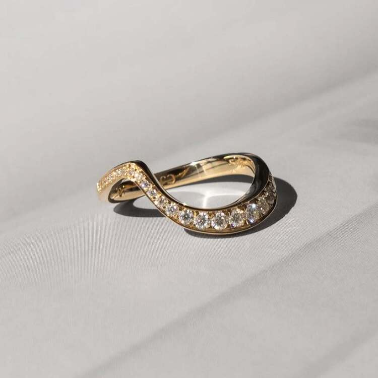 This sculptural band features tapering Moissanites that illuminate a fluid line, with a bold yet elegant look overall.This is a wearable art piece that is truly captivating, whether you wear it stacked or on its own.
