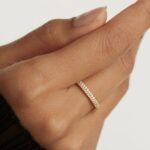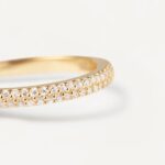 The Whisper Band is our take on timeless minimalism — a slim 18 karat yellow gold ring paved with micro-set diamonds that shimmer like secrets only you’re meant to keep. Perfect for stacking, but bold enough to stand on its own, she’s the one you wear when you’re effortlessly running the show.